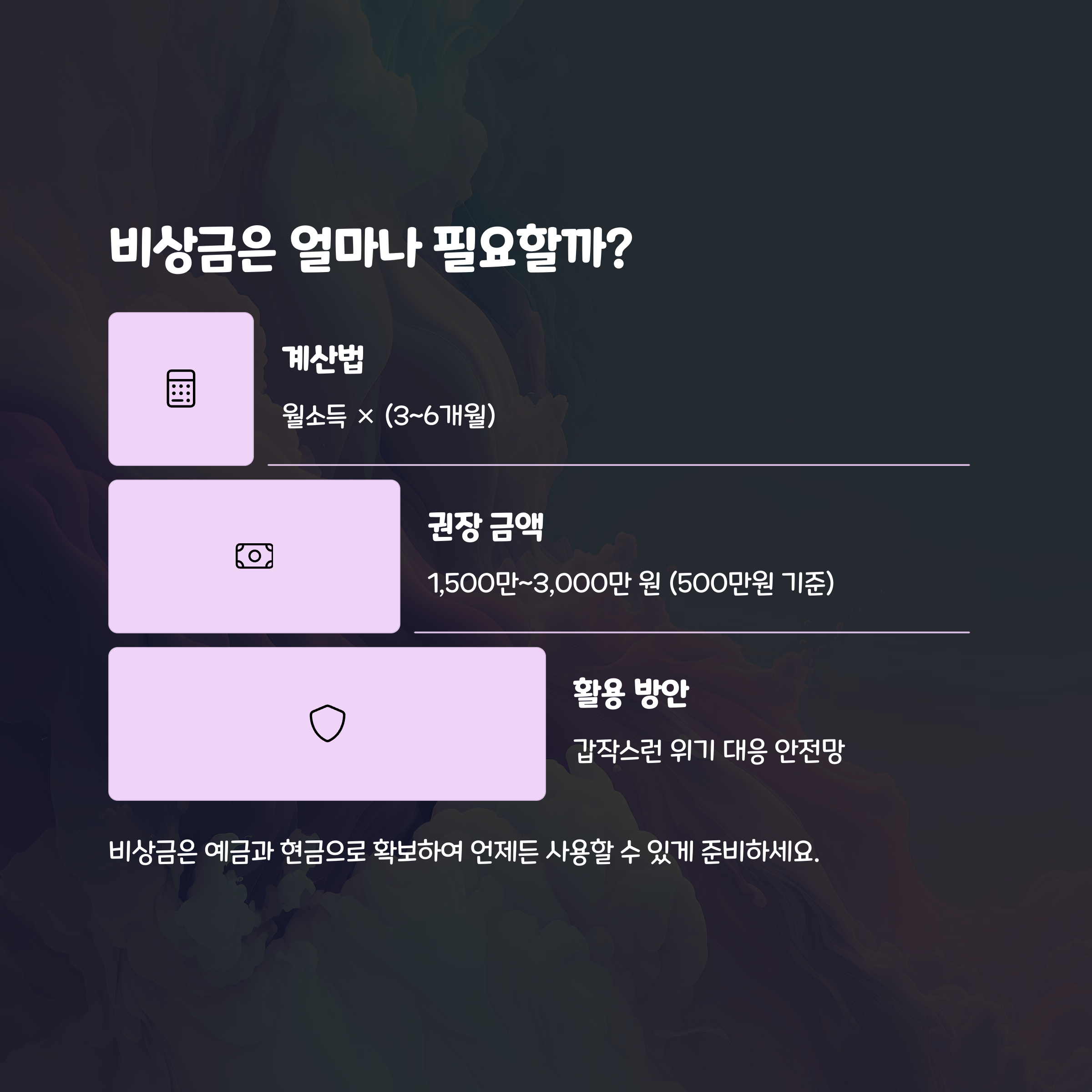 “비상금은 안 쓰기 위해 준비하는 자산입니다.” 🧯